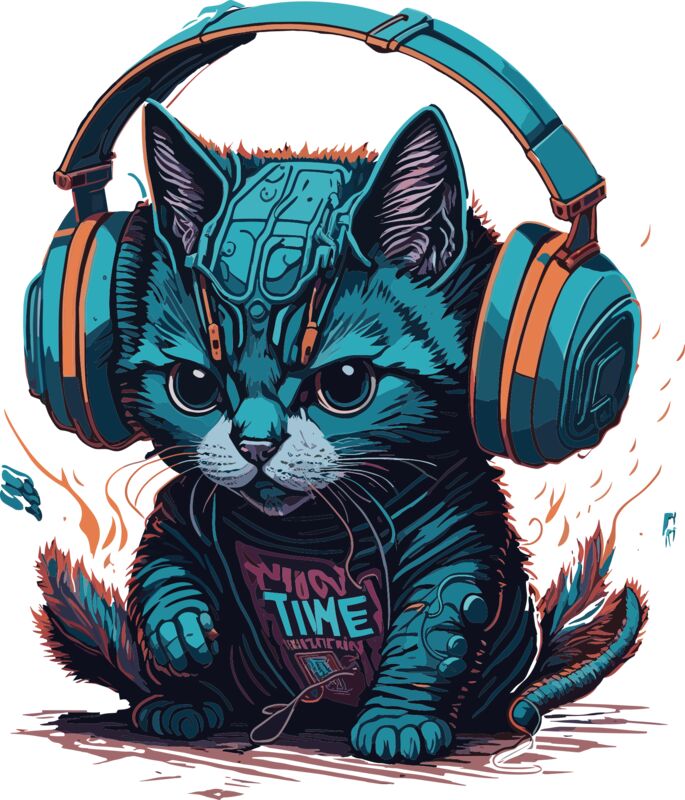 Cat with Headphones Meow Time
