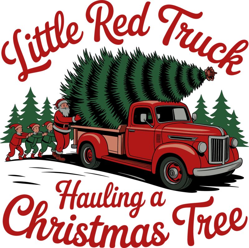 Little Red Truck Hauling A Christmas Tree